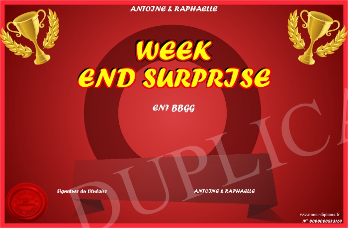 Envoyez par email votre WEEK END SURPRISE personalisé
