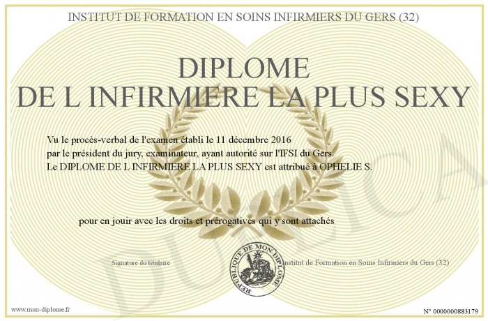 Envoyez par email votre DIPLOME DE L INFIRMIERE LA PLUS SEXY personalisé