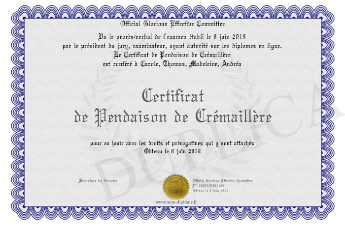 Envoyez par email votre Certificat de Pendaison de Crémaillère personalisé