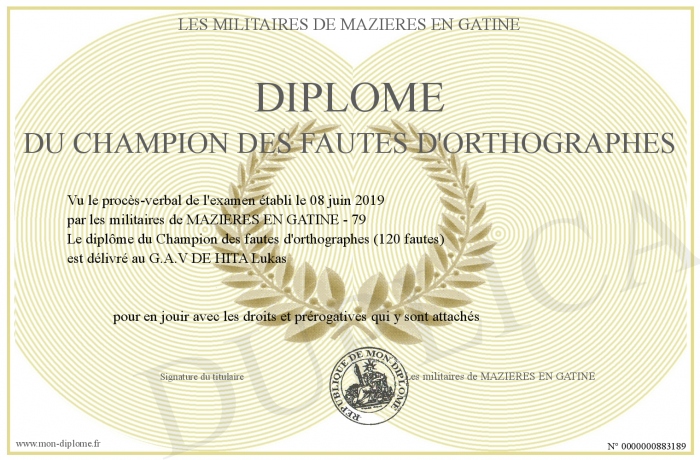 Envoyez par email votre Diplôme du Champion des fautes d'orthographes personalisé