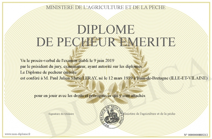 Envoyez par email votre Diplome de pecheur émérite personalisé