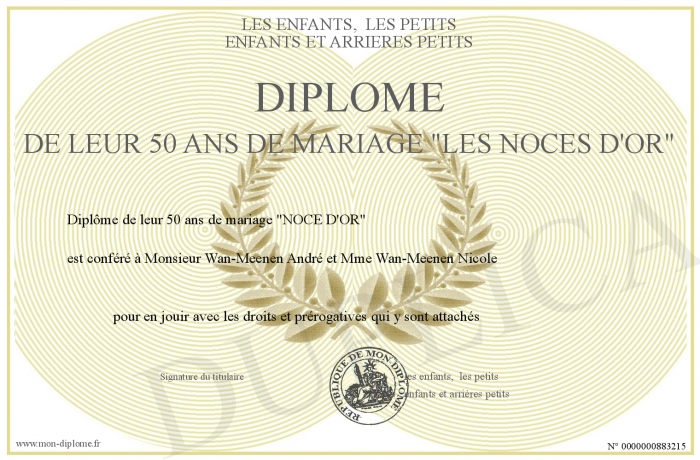 Envoyez par email votre Diplôme de leur 50 ans de mariage -les Noces D'Or- personalisé