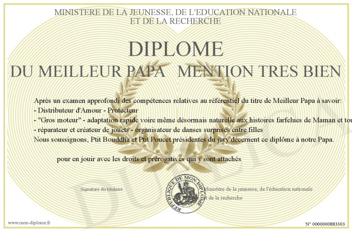Envoyez par email votre Diplôme du Meilleur Papa Mention très bien personalisé