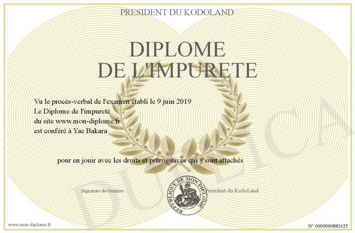 Envoyez par email votre Diplôme de l'impureté personalisé