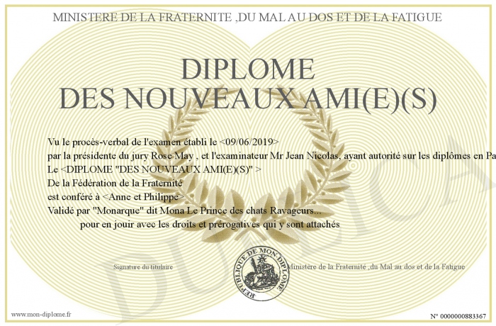 Envoyez par email votre Diplôme des Nouveaux Ami(e)(s) personalisé