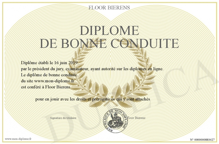 Envoyez par email votre Diplôme de bonne conduite personalisé