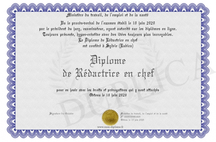 Envoyez par email votre Diplôme de Rédactrice en chef personalisé