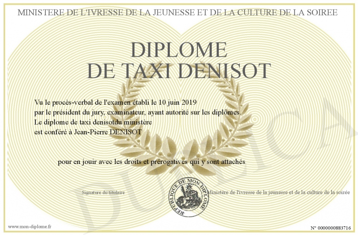 Envoyez par email votre diplôme de taxi denisot personalisé