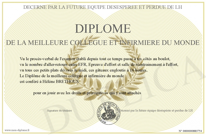 Envoyez par email votre Diplôme de la meilleure collègue et infirmiere du monde personalisé