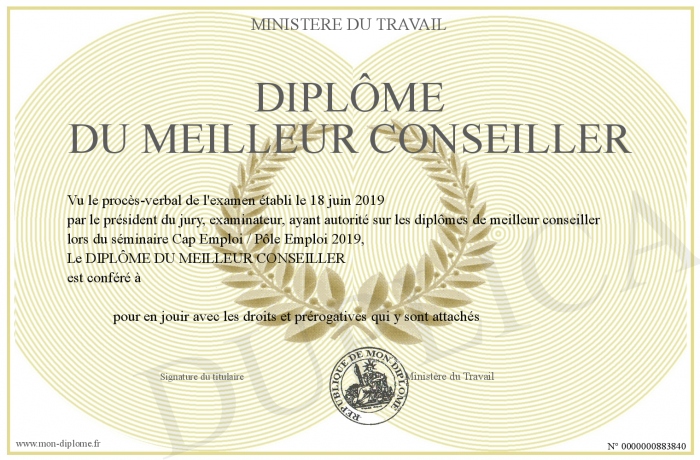 Envoyez par email votre DIPLÔME DU MEILLEUR CONSEILLER personalisé