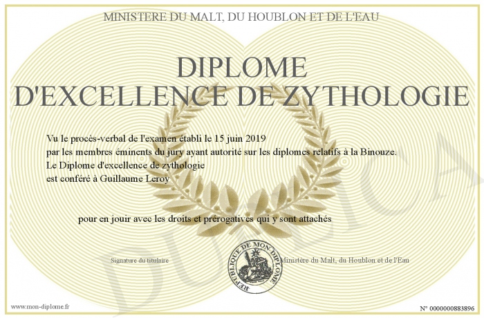 Envoyez par email votre Diplôme d'excellence de zythologie personalisé