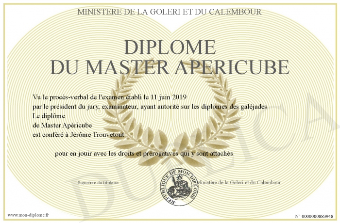 Envoyez par email votre Diplôme du Master Apéricube personalisé