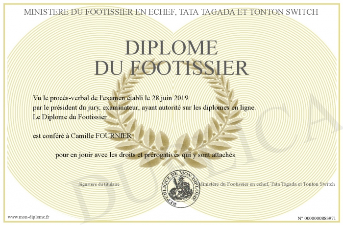 Envoyez par email votre Diplôme du Footissier personalisé
