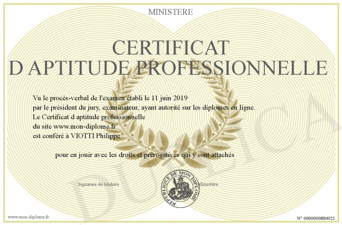Envoyez par email votre Certificat d aptitude professionnelle personalisé
