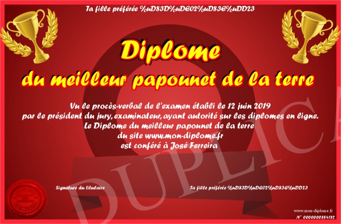 Envoyez par email votre Diplôme du meilleur papounet de la terre personalisé