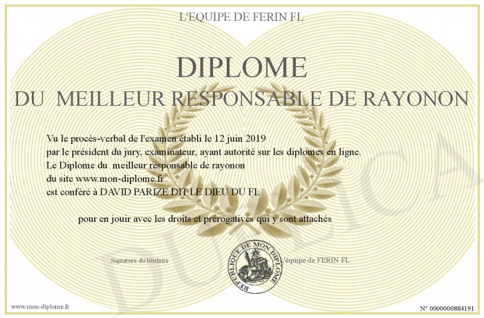 Envoyez par email votre Diplôme du meilleur responsable de rayonon personalisé