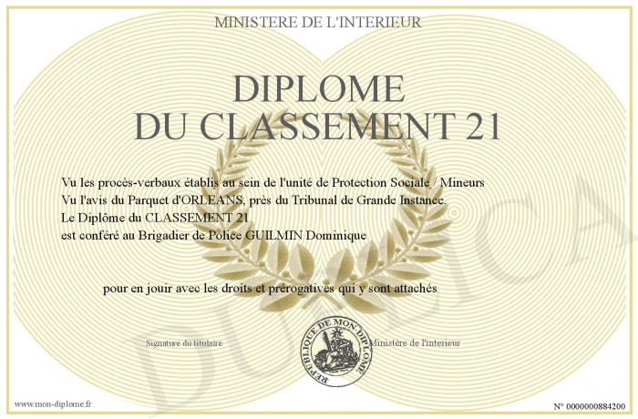 Envoyez par email votre Diplôme du Classement 21 personalisé