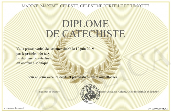 Envoyez par email votre Diplôme de catéchiste personalisé