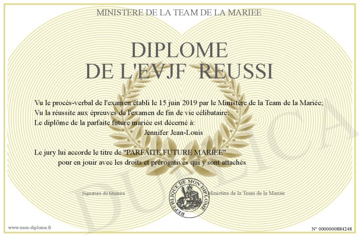 Envoyez par email votre Diplôme de l'EVJF réussi personalisé
