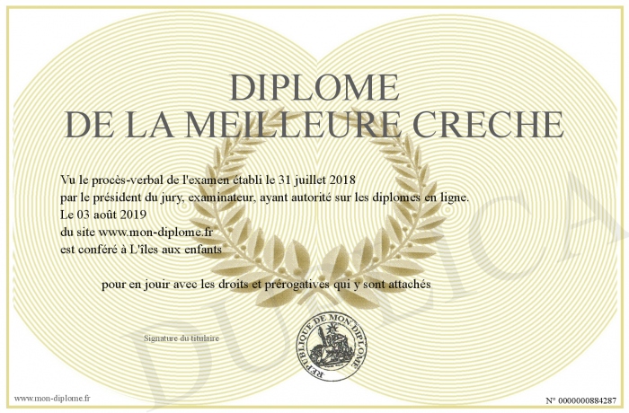 Envoyez par email votre Diplôme de la meilleure créche personalisé