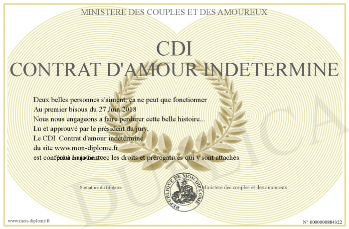 Envoyez par email votre CDI Contrat d'amour indéterminé personalisé