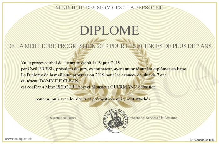 Envoyez par email votre Diplôme de la meilleure progression 2019 pour les agences de plus de 7 ans personalisé