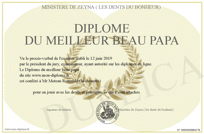 Envoyez par email votre Diplôme du meilleur beau papa personalisé