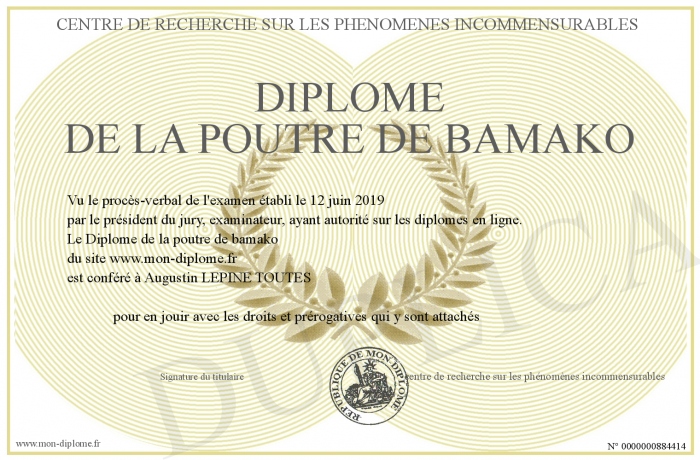 Envoyez par email votre Diplôme de la poutre de bamako personalisé