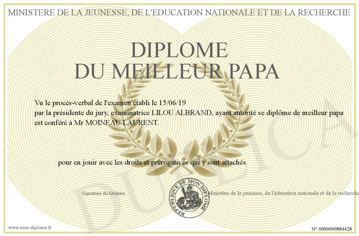 Envoyez par email votre Diplôme du meilleur papa personalisé