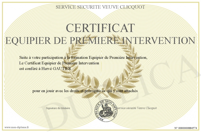 Envoyez par email votre Certificat Equipier de Première Intervention personalisé