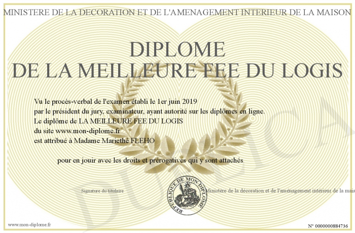 Envoyez par email votre Diplôme de la meilleure fée du logis personalisé