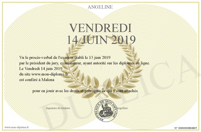 Envoyez par email votre Vendredi 14 juin 2019 personalisé