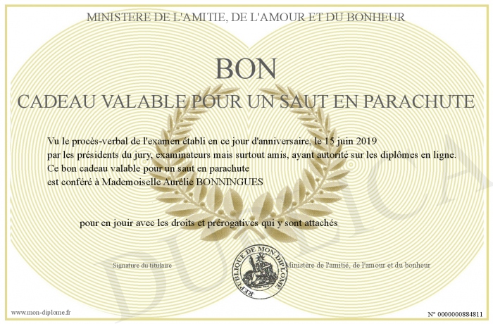 Envoyez par email votre bon cadeau valable pour un saut en parachute personalisé