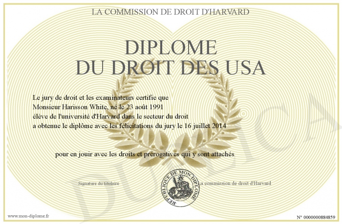 Envoyez par email votre Diplôme du droit des USA personalisé