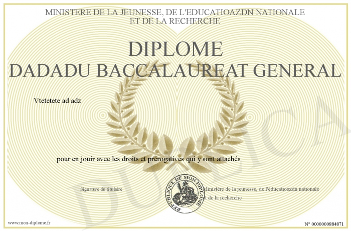 Envoyez par email votre Diplôme dadadu baccalaureat général personalisé