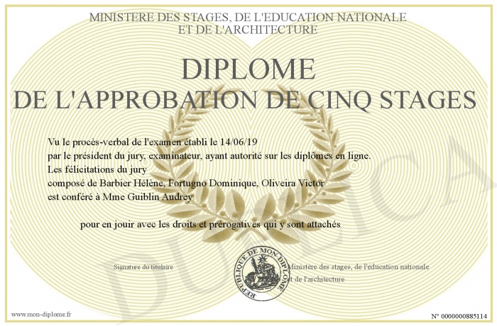 Envoyez par email votre Diplôme de l'approbation de cinq stages personalisé