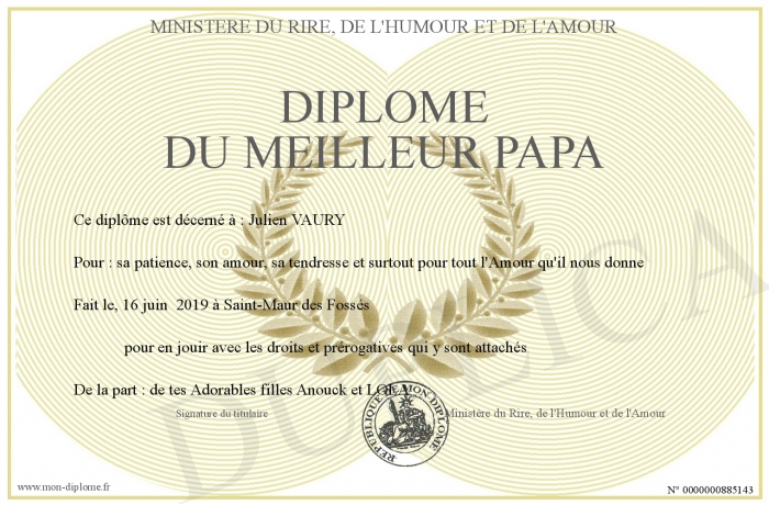 Envoyez par email votre Diplôme du meilleur Papa personalisé