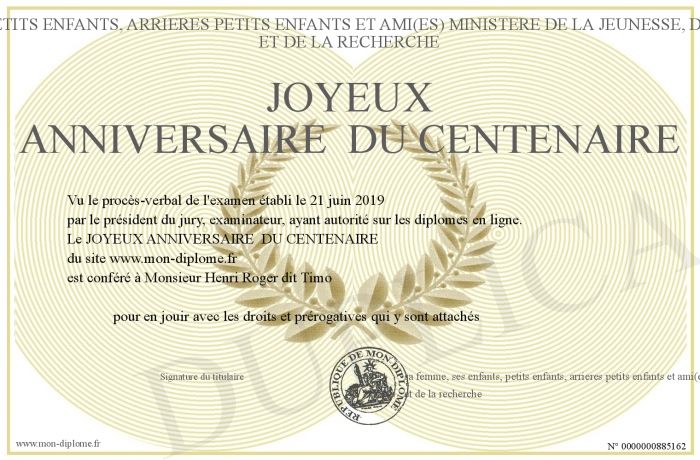 Envoyez par email votre JOYEUX ANNIVERSAIRE DU CENTENAIRE personalisé
