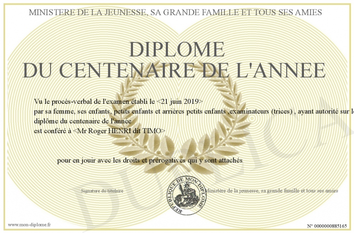 Envoyez par email votre Diplôme du centenaire de l'Année personalisé