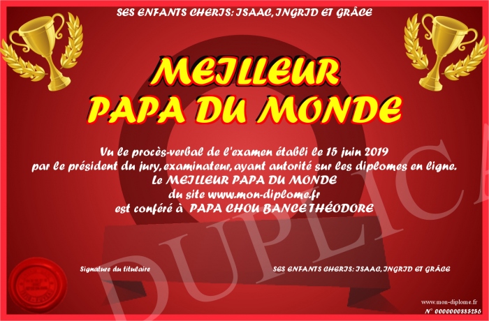Envoyez par email votre MEILLEUR PAPA DU MONDE personalisé