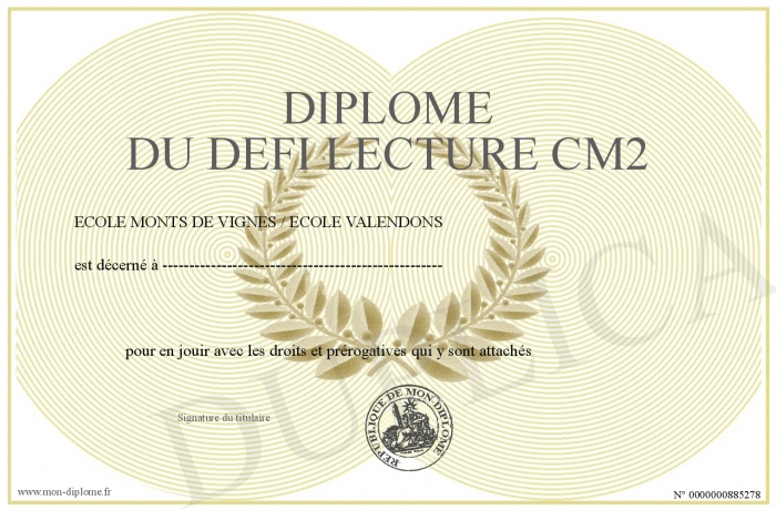 Envoyez par email votre Diplôme du DEFI LECTURE CM2 personalisé
