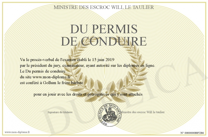 Envoyez par email votre Du permis de conduire personalisé