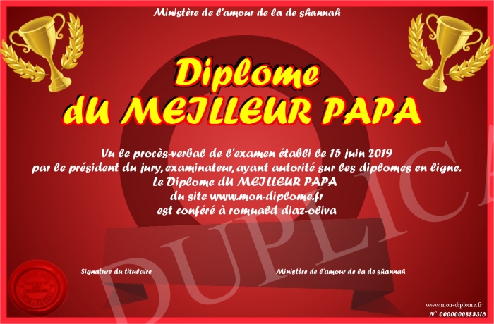 Envoyez par email votre Diplome dU MEILLEUR PAPA personalisé