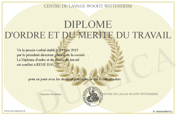 Envoyez par email votre Diplôme d'ordre et du merite du travail personalisé