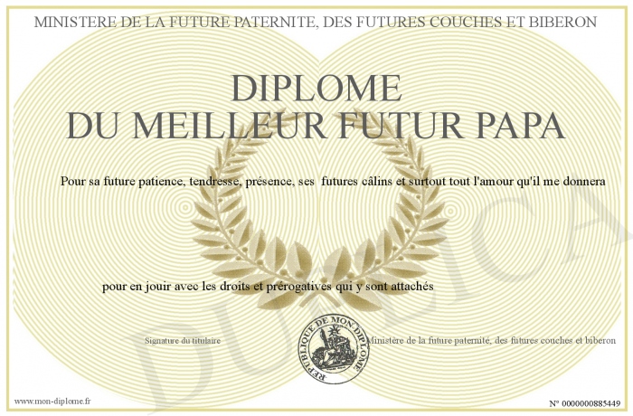 Envoyez par email votre Diplôme du Meilleur Futur Papa personalisé