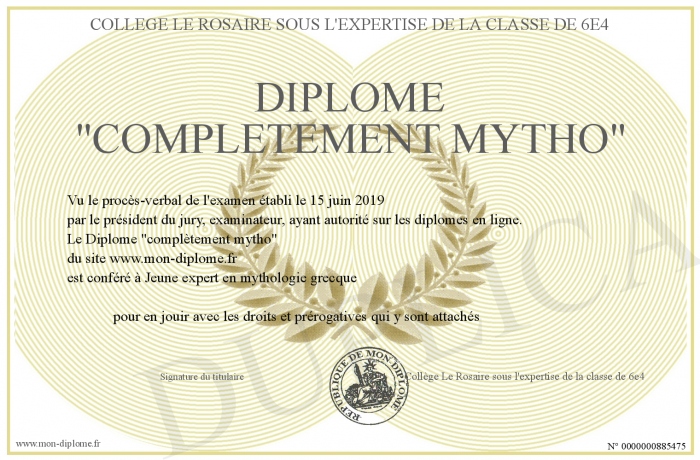 Envoyez par email votre Diplôme -complètement mytho- personalisé