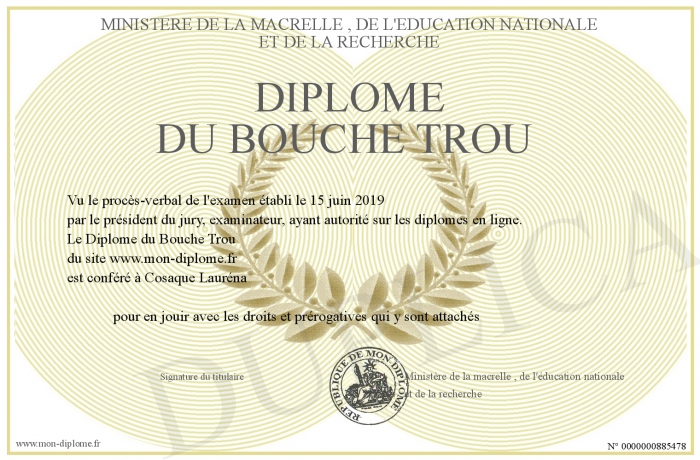 Envoyez par email votre Diplôme du Bouche Trou personalisé