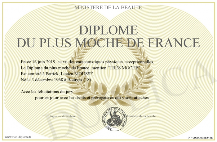 Envoyez par email votre Diplôme du plus moche de France personalisé