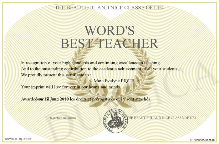 Envoyez par email votre WORD'S BEST TEACHER personalisé
