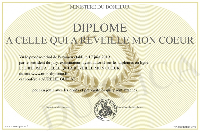 Envoyez par email votre DIPLOME A CELLE QUI A REVEILLE MON COEUR personalisé